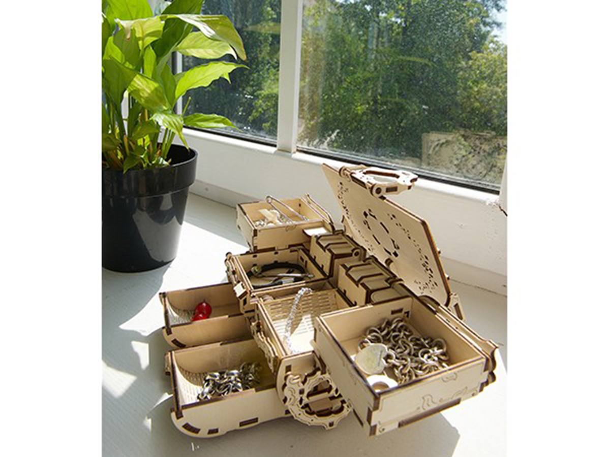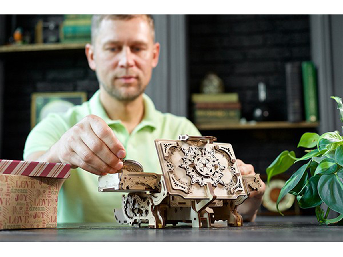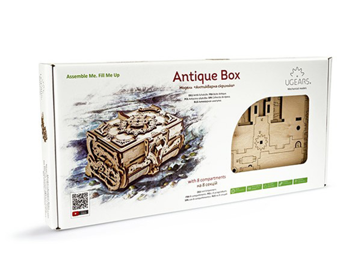 UGears Антикварная шкатулка — это необычный деревянный 3D-пазл в форме шкатулки. Сможет стать полезным приобретением, украшением интерьера или оригинальным подарком. В готовом виде подходит для хранения украшений или важных мелочей. Это полноценная шкатулка, которую можно использовать каждый день, но при этом собранная своими руками!