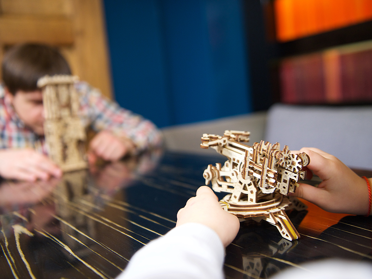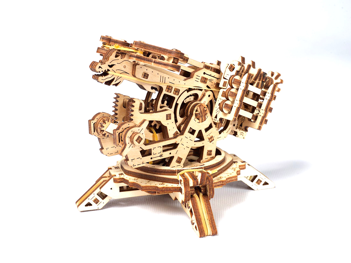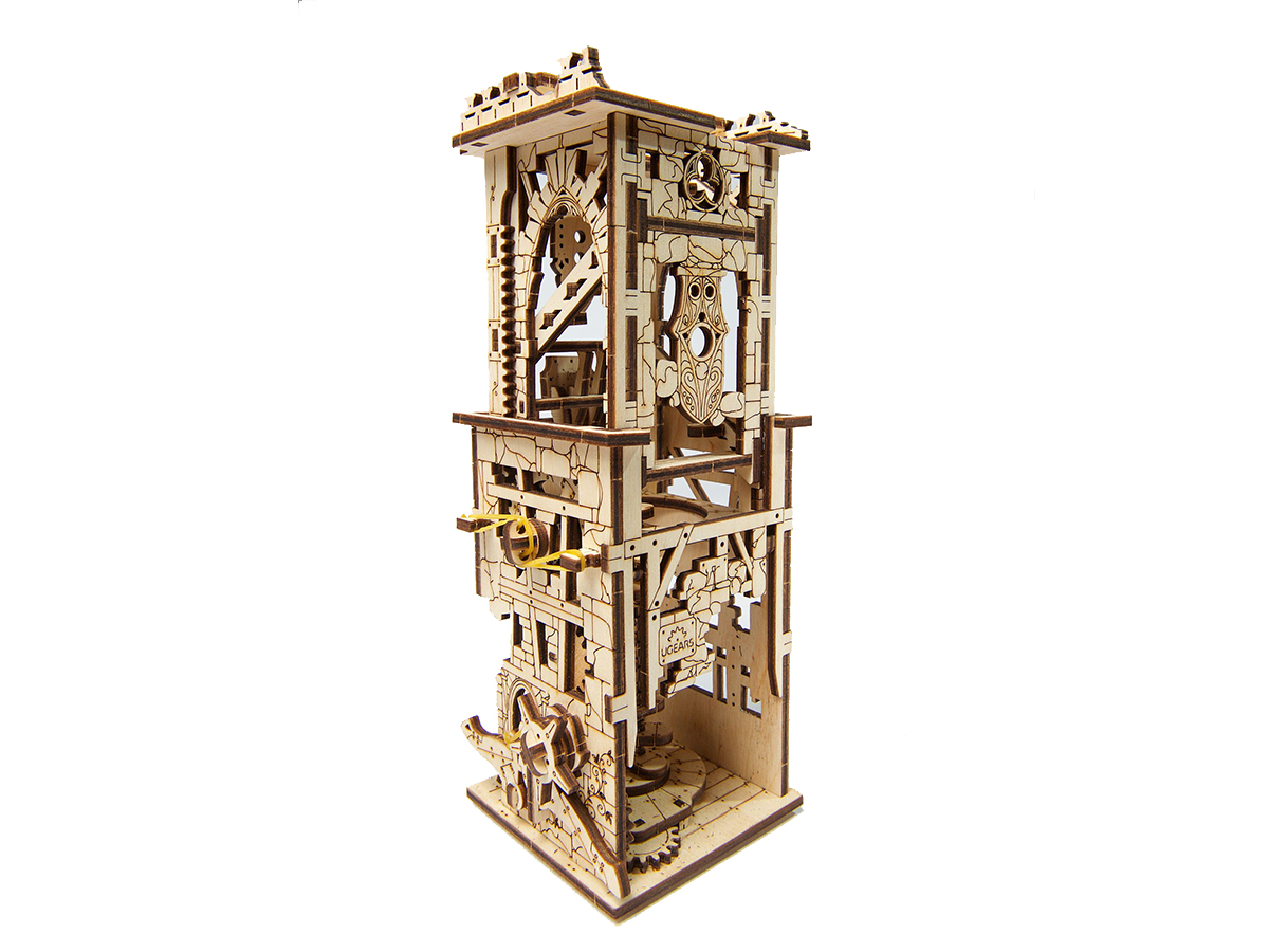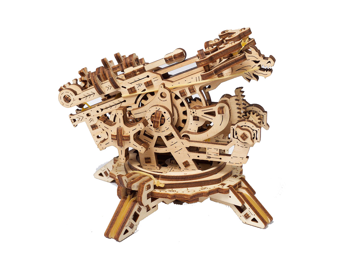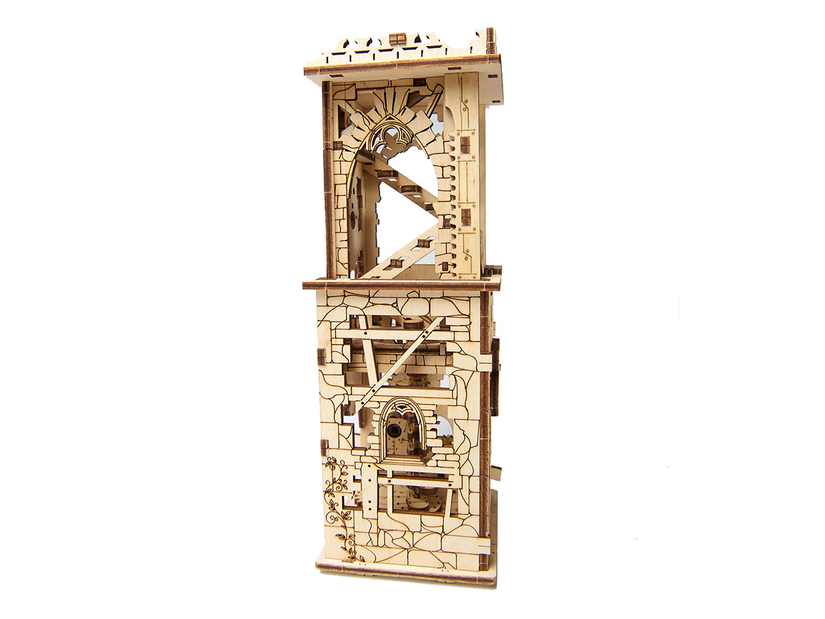 3D-пазл Башня-аркбаллистаот UGears – модель, вдохновленная лучшими примерами древней артиллерии в литературе и художественных фильмах. Этот пазл состоит из двух частей: осадочная машина и механическая башня. Сама баллиста стреляет деревянными болтами. С помощью механизмов можно выставить на башне необходимый угол по горизонтали и вертикали, чтобы вести максимально прицельный огонь.