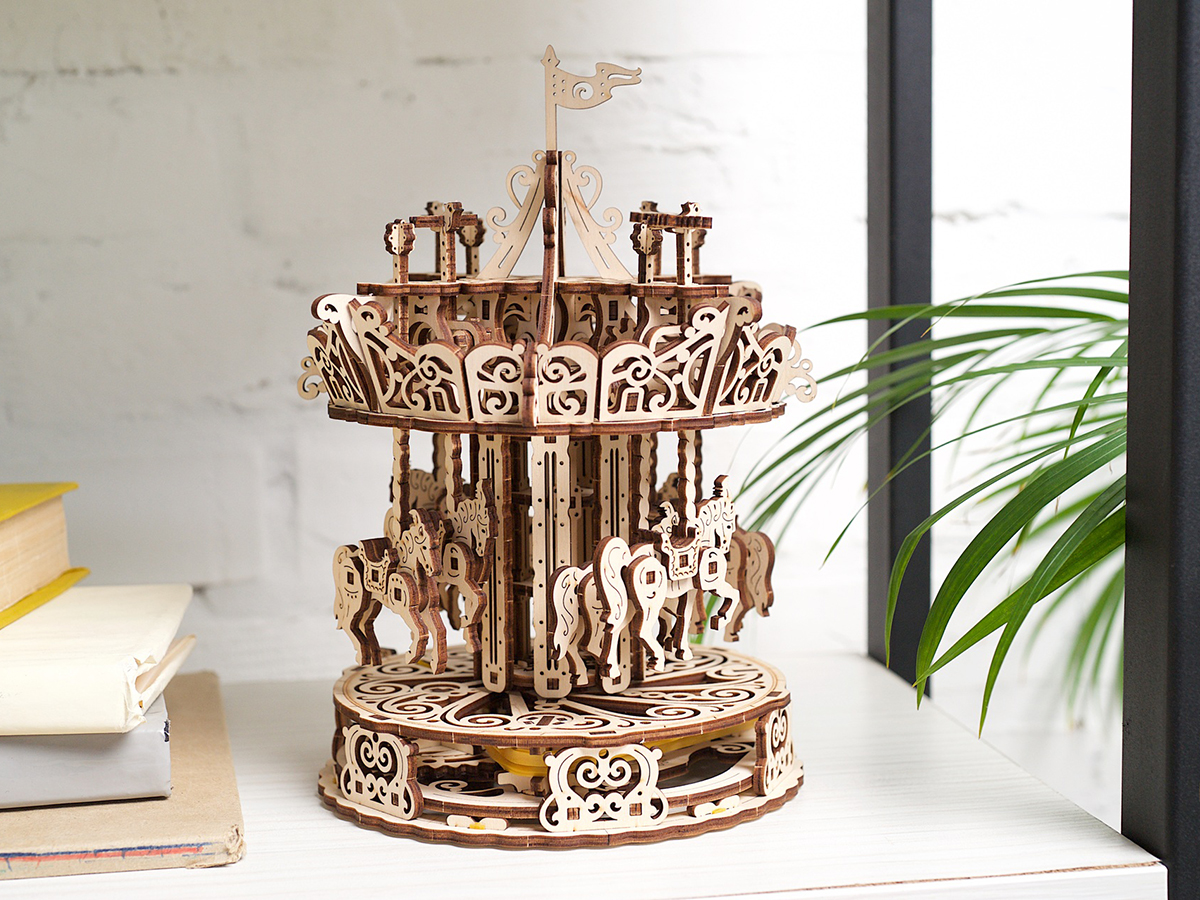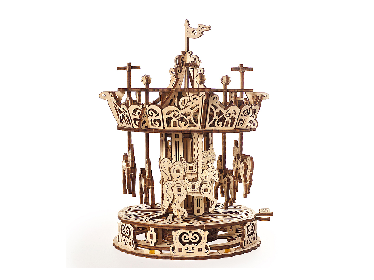 UGears Карусель — это деревянный 3D-пазл, который позволит окунуться в детство. Его интересно собирать и затем наблюдать за ним. Для работы не требуется клей или дополнительные материалы, а со сборкой справится каждый — достаточно следовать простой схеме. Это отличный подарок для детей и взрослых любых возрастов.