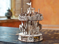 Комплект включает в себя детали, присущие настоящей карусели: ажурная резьба, готовые бежать кони, резная крыша с флажком. После сборки набор будет притягивать взгляды, а готовая карусель станет настоящей изюминкой любого интерьера.