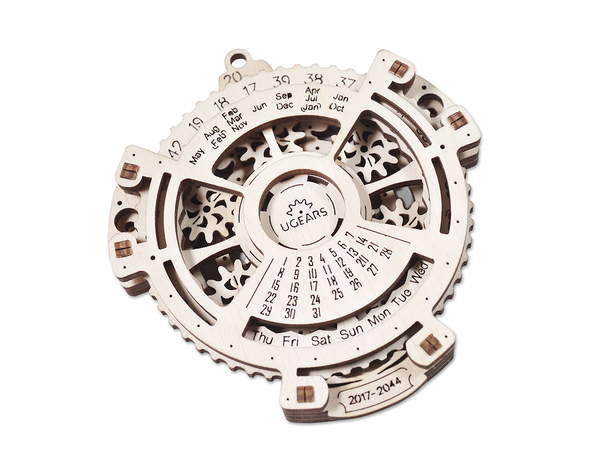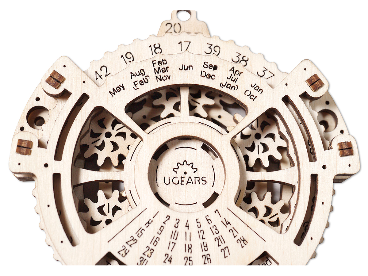 Одной из самых оригинальных новинок стал 3D-пазл UGears Механический календарь, который позволяет установить напоминалку на определенный день через неделю, месяц или на 2044 год!