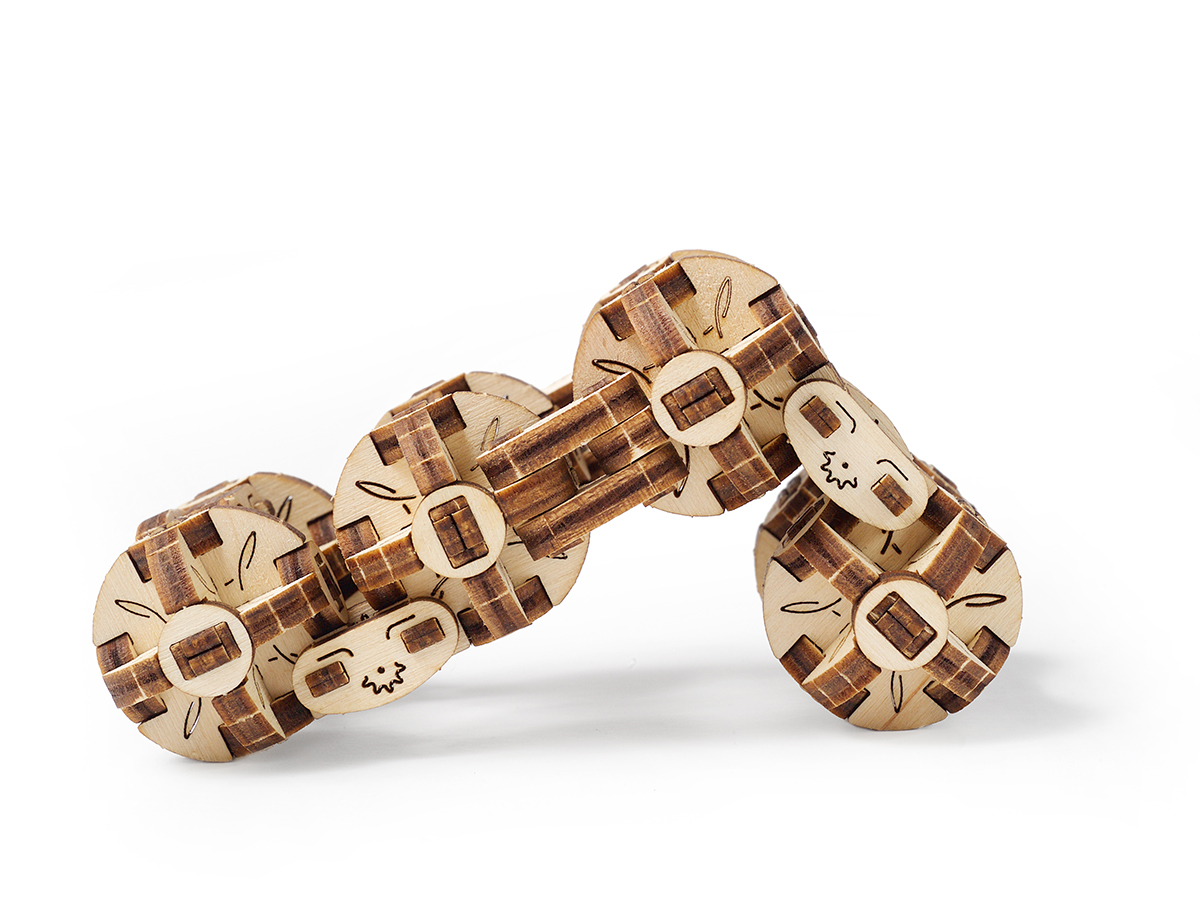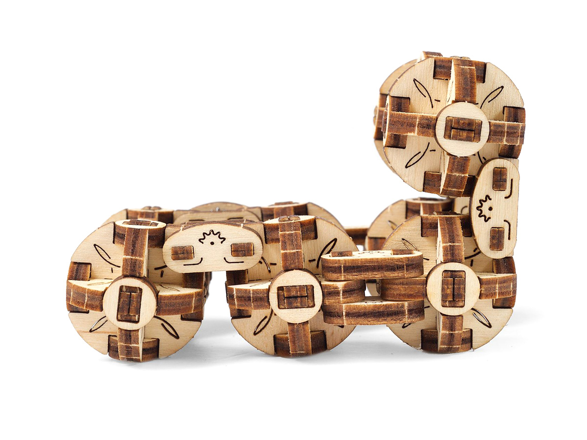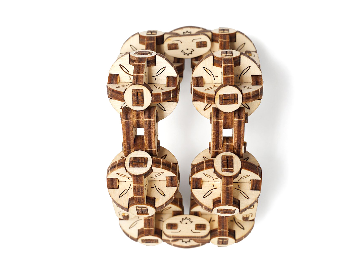 Продукция UGears – это 3D-пазлы, выполненные из экологичных материалов, которые собираются без клея и дополнительных инструментов. Среди линейки UGears есть и механическая головоломка-антистресс Сферокуб. Сферокуб представляет собой стимпанковый кубик. Он состоит из восьми сфер, которые соединены друг с другом. Благодаря этим сферам кубик перекатывается и приобретает всевозможные геометрические формы: прямоугольника, трехмерного куба, трапеции и т.д. Каждый сустав между сферами изгибается множество раз от одного к другому.