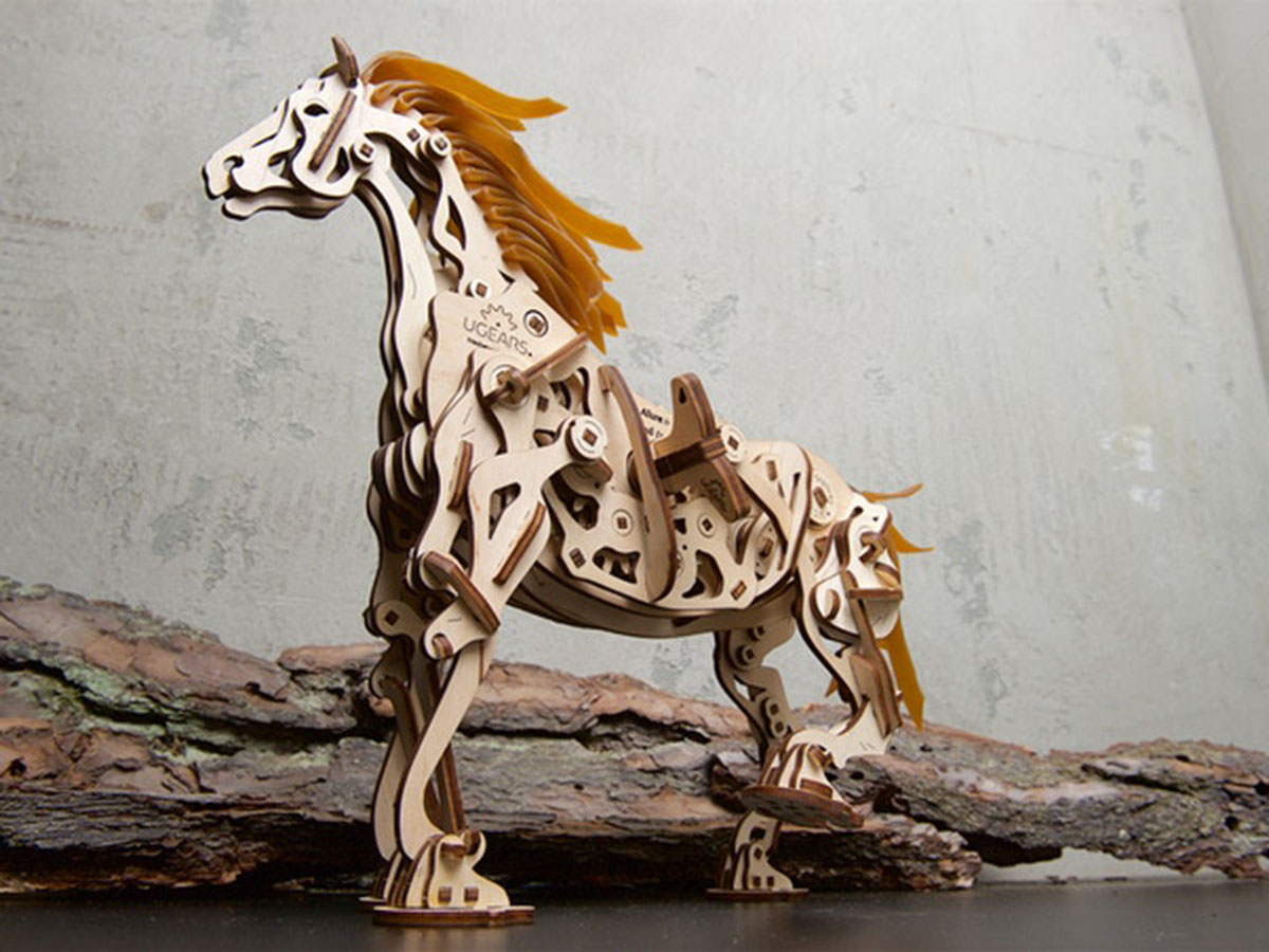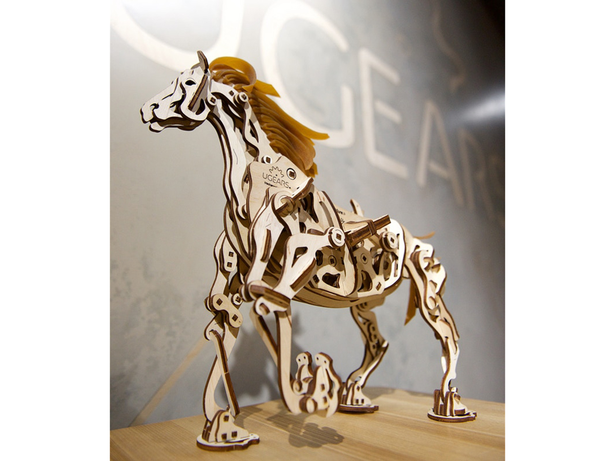 Лошадь-Механоид – это не просто сборная модель: заведите двигатель, и она придет в движение. Уникальный механизм, разработанный инженерами UGears, позволяет лошади ходить по ровным поверхностям и двигать при этом головой. Оценить красоту движений позволяет полуоткрытая конструкция модели. Пазл состоит из множества мелких деталей и предназначен для сборки людьми старше 14 лет.