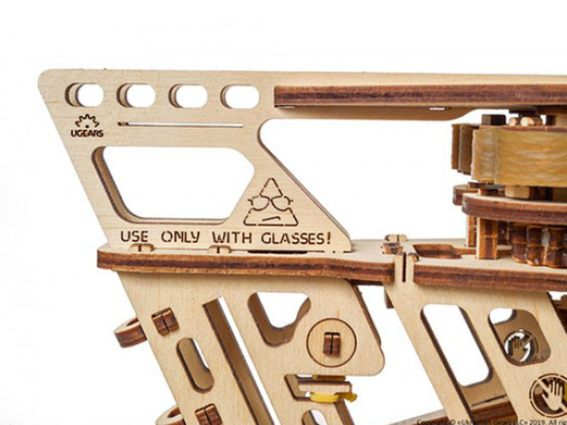 3D-пазл UGears Пускатель самолетиков вдохновлён свободой полёта. Он напоминает о прошлом, но одновременно с этим не забывает о возможностях будущего. Корпус специально создан открытым, напоминая о стимпанке-скелетоне. Это отправляет в прошлое, возвращая к первым механическим самолётам, легендарном полёте братьев Райт! Форма же модели, плавная и минималистичная, больше напоминает о Звездных войнах и межгалактических путешествиях!