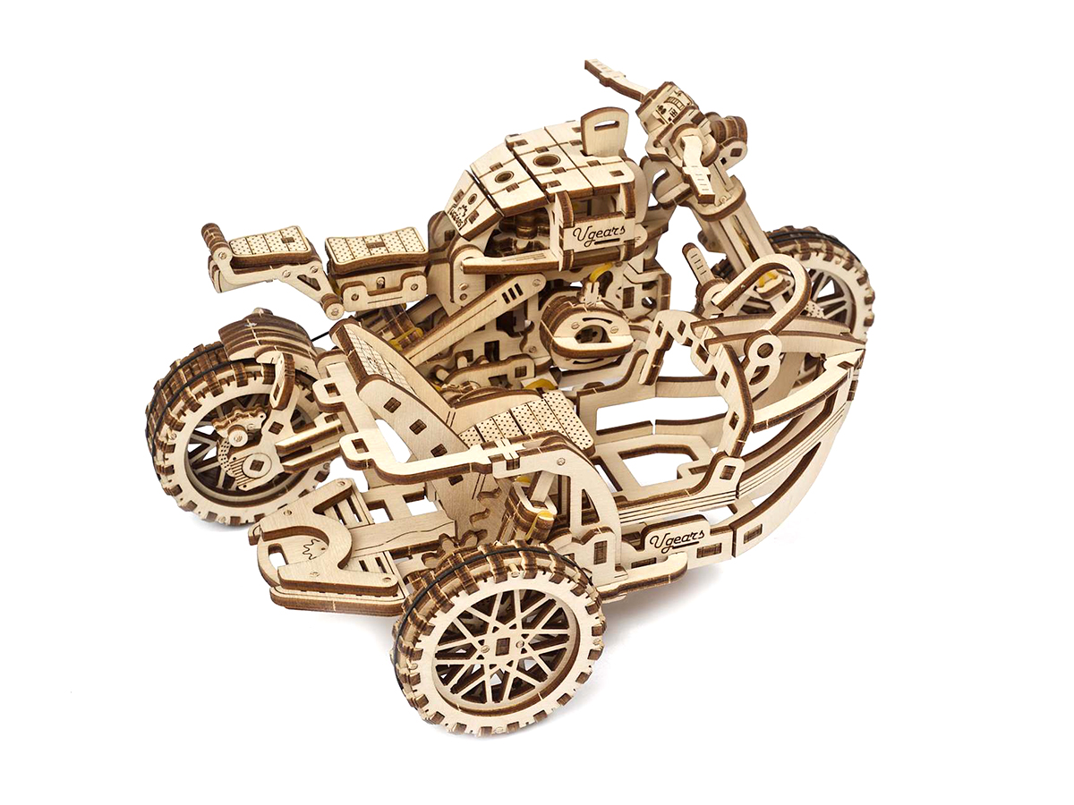 Набор планшетов с деталями для сборки 3D-пазла UGears Мотоцикл Scrambler UGR-10 с коляской