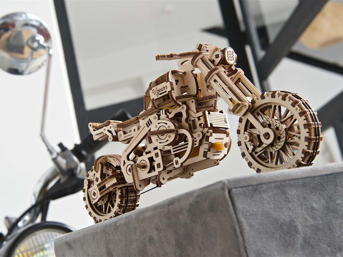 3D-пазл UGears Мотоцикл Scrambler UGR-10 с коляской