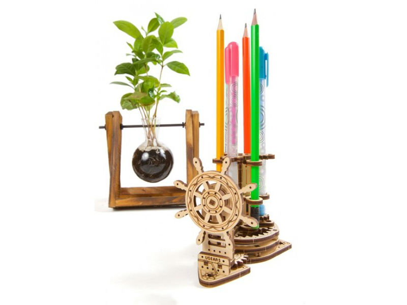 Дизайн 3D-пазла UGears Штурвал-Органайзера полностью вдохновлён романтизмом и брутальностью морских путешествий, которых так не хватает в рабочие дни. Морской воздух или космос над головой ― кажется, что это слишком громкие слова для органайзера, но не для конструктора от Ugears!