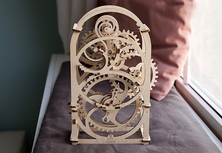 Конструкция из разного размера шестеренок и маятника представляет сразу два циферблата с секундной и минутной стрелками. Во время сборки вам не потребуется ни клей, ни дополнительные детали, которые могут нарушить эстетический дизайн таймера.