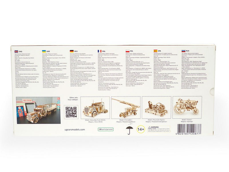 UGears Трейлер для тягача Heavy Boy VM-03 – 3D-конструктор, который собирается без единого инструмента. Является дополнением к Heavy Boy VM-03. Он необходим, чтобы предоставить реалистичные впечатления от перевозки с помощью трака. С прицепом вы сможете экспедировать грузы. Вместительный трейлер перевезет ваши любимые вещи, он доставит коробку конфет, тарелку с пиццей, фрукты или даже корабль в бутылке.