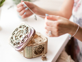 Полуоткрытая конструкция модели позволяет в полной мере насладиться работой механизма. Ажурный вид шкатулки словно предлагает заглянуть внутрь и полюбоваться содержимым. Но это не так-то просто: в крышку встроен механизм с секретом, который надежно оберегает спрятанные предметы от посторонних глаз. Это отличный вариант для ювелирных украшений, секретных заметок и писем.